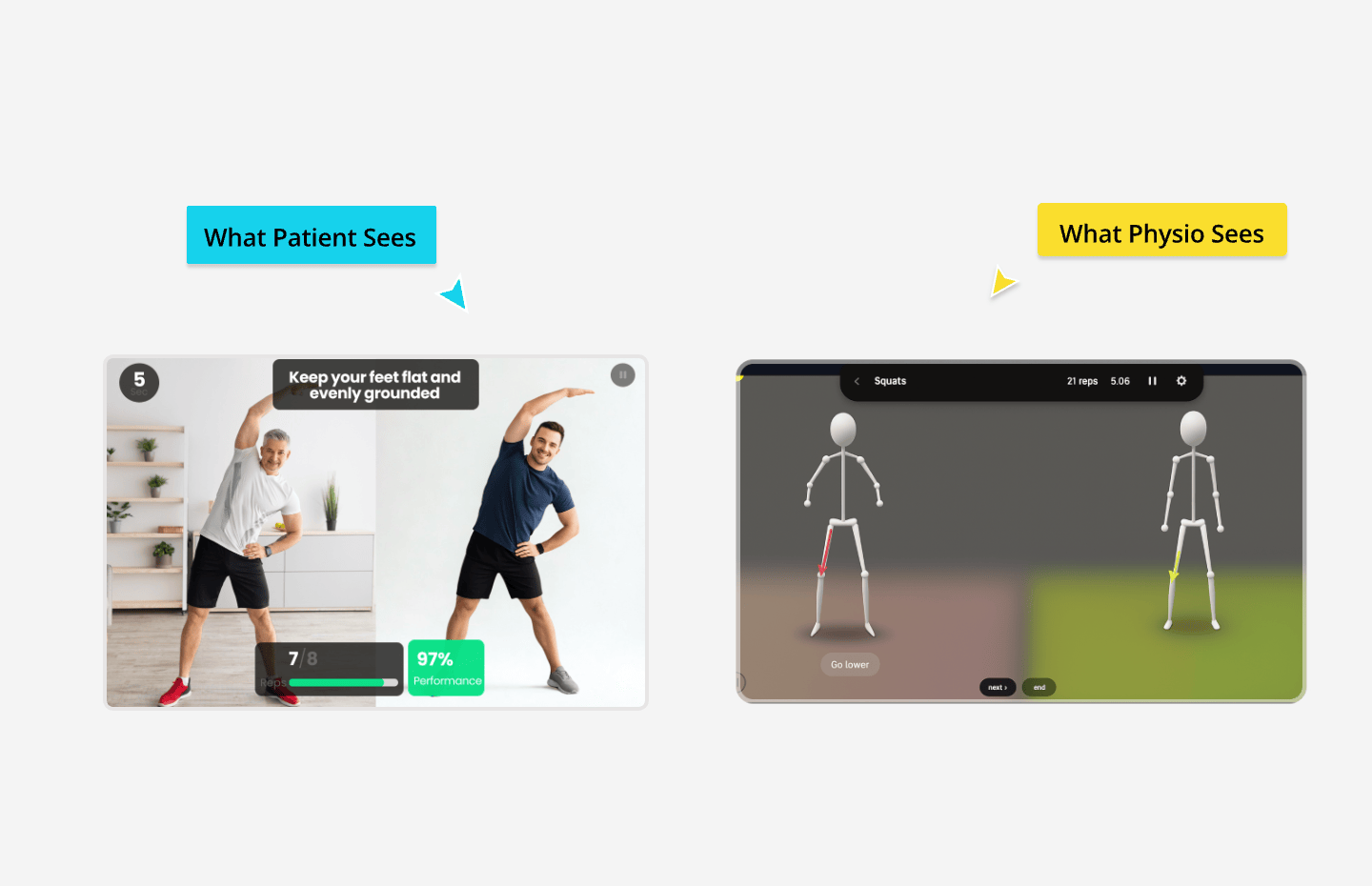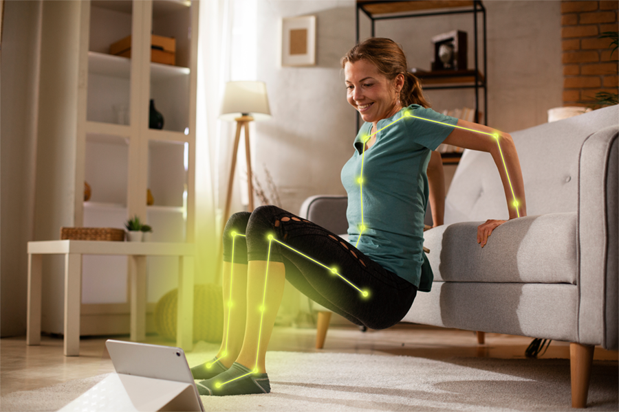 AI tracks 111 body points to provide corrective guidance during exercise and share performance data with the physio.